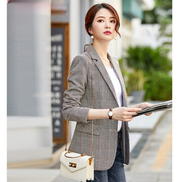 【京东商城】 特洛曼格子小西装女气质休闲英伦风2019新款女装外套上衣复古网红韩版春秋款小西服时尚百搭通勤OL 杏色小西装 M【图片 价格 品牌 评论】-京东