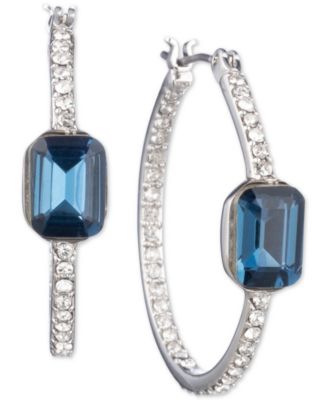 【Macy's】 Givenchy Small Silver-Tone Pavé & Stone Hoop Earrings 1" & Reviews - Fashion Jewelry - Jewelry & Watches - Macy's