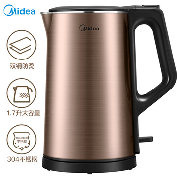 【京东商城】 【美的MK-SH17E312】美的(Midea)电水壶热水壶电热水壶304不锈钢水壶双层防烫全钢开水壶暖水壶烧水壶MK-SH17E312 新品上市-双钢水壶