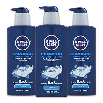 【美国亚马逊】 Amazon : NIVEA Men Express Absorption 3-in-1 Revitalizing Lotion - Body, Face, Hands - 16.9 oz. Pump Bottle (Pack of 3) : Beauty