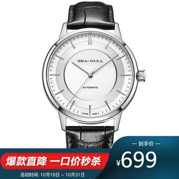 【京东商城】 海鸥(SeaGull)手表 国民系列男士手表 自动机械手表男士 机械表 商务休闲简约大三针腕表 男表 819.12.6061