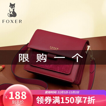 京东商城 【当季新品】金狐狸包包女包2019新款韩版百搭小方包牛皮宽肩带斜挎时尚单肩风琴女包 勃艮第红JD9051460POP11F1CJD9051460POP11F_海淘网