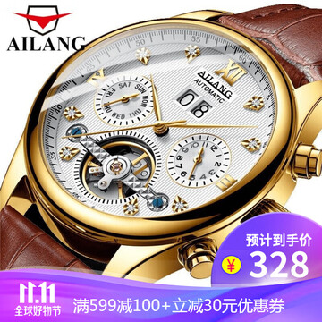 【京东商城】 AILANG/艾浪 手表男士 瑞士认证全自动机械表2019新款潮流商务防水陀飞轮镂空运动男表机械腕表 皮带间金白面【图片 价格 品牌 评论】-京东