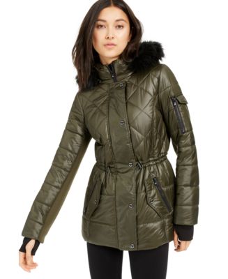 【Macy's】 Michael Kors Active Faux-Fur Trim Hooded Anorak Puffer Coat & Reviews - Coats - Women - Macy's