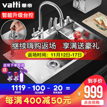 【京东商城】 华帝手工水槽单槽厨房家用304不锈钢3MM加厚加深加大单槽洗菜盆洗碗槽刀架台控 【品质精选】台控水槽+赠抽拉龙头(750450) 支持台上中下安装【现货即发】 092107/092108