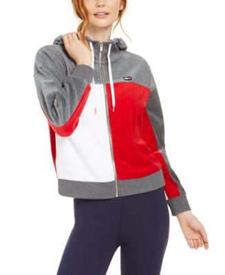 【Macy's】 Tommy Hilfiger Velour Colorblocked Zip-Up Jacket & Reviews - Tops - Women - Macy's