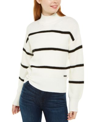 【Macy's】 Calvin Klein Jeans Striped Mock-Neck Sweater & Reviews - Sweaters - Juniors - Macy's