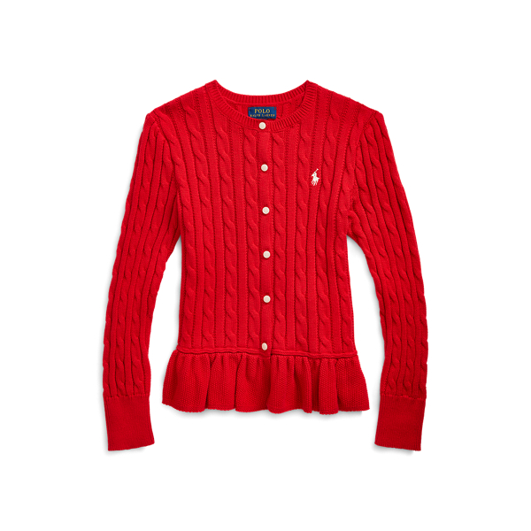 【拉夫劳伦】 Cable Cotton Peplum Cardigan
