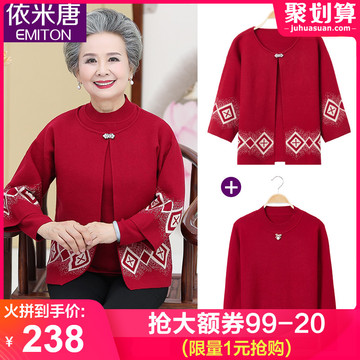 【天猫】 老年人秋装女套装奶奶装本命年红色毛衣老人衣服中老年妈妈两件套