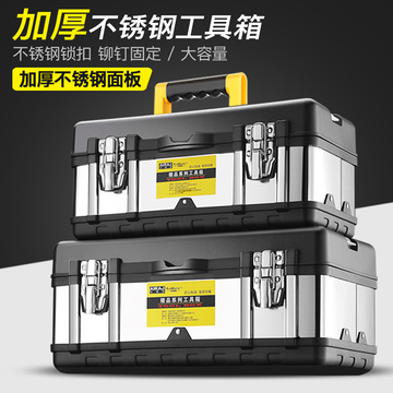 天猫 不锈钢工具箱多功能家用手提式大电工铁皮箱子五金维修工具收纳盒_海淘网