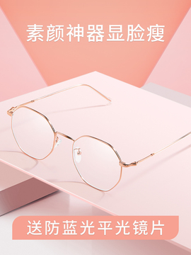 天猫 防辐射抗蓝光眼镜近视女配有度数网红多边形框平光护眼睛男韩版潮_海淘网