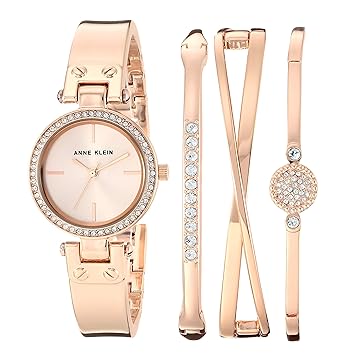 【美国亚马逊】 Amazon.com: Anne Klein Women's Swarovski Crystal Accented Rose Gold-Tone Watch Bangle Set, AK/3368RGST: Watches