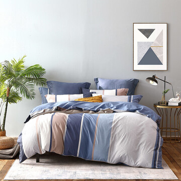 京东商城 水星家纺 床上四件套纯棉 全棉斜纹床品套件被套床单被罩 弗利安 加大双人1.8米床AY590A04_海淘网