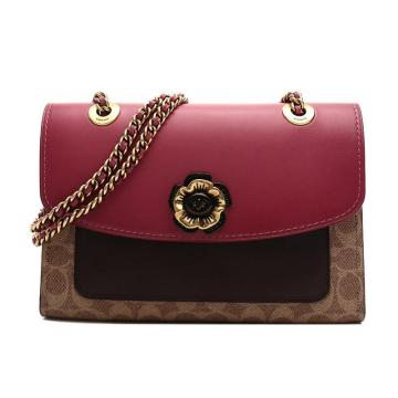 苏宁易购 COACH 蔻驰 奢侈品 女士专柜款PARKER系列涂层帆布配皮山茶花单肩斜挎包 79439 B4PEX-灰粉色棕色多色_海淘网