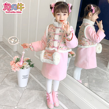 天猫 女童唐装拜年服宝宝女新年装冬装过年衣服中国风儿童宝宝旗袍背心_海淘网