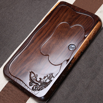 天猫 森煜 整块黑檀木实木茶盘简约排水 家用功夫茶具茶海长方形茶托台_海淘网