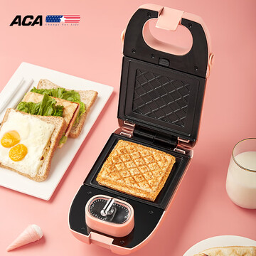 【京东商城】 北美电器(ACA)家用三明治机面包机早餐机迷你煎烤双面加热华夫饼机轻食机吐司机电饼铛 AH-S650(梦幻粉)
