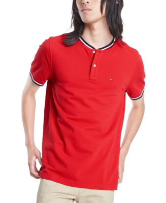 【Macy's】 Tommy Hilfiger Men's Eaton Custom-Fit Tipped Collarless Polo Shirt & Reviews - Polos - Men - Macy's