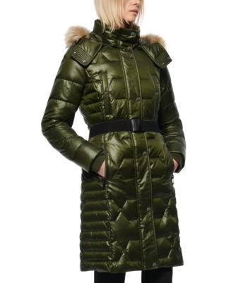 【Macy's】 Marc New York Belted Faux Fur Hooded Down Puffer Coat & Reviews - Coats - Women - Macy's