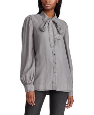 Macy's Lauren Ralph Lauren Necktie Buttoned Blouse & Reviews - Tops - Women - Macy's_海淘网