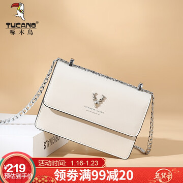 【京东商城】 啄木鸟(TUCANO) 女包包时尚单肩包链条女包麋鹿个性小方包百搭斜挎包包女 WBK4431A-89W3米白【图片 价格 品牌 评论】-京东