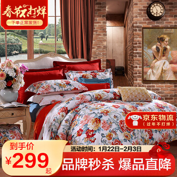 【京东商城】 富安娜家纺 纯棉四件套印花套件全棉床上用品双人1.8米床单被套 红色 1.5米(5英尺)床【图片 价格 品牌 评论】-京东
