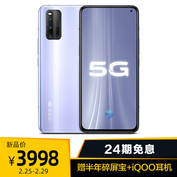 【京东商城】 iQOO 3 12GB+128GB 流光银 高通骁龙865 55W超快闪充 专业电竞游戏手机 双模5G全网通手机 vivo