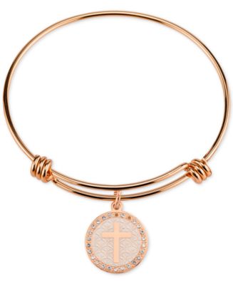 【Macy's】 Unwritten Cross Disc Charm Bangle Bracelet in Rose Gold-Tone Stainless Steel & Reviews - Bracelets - Jewelry & Watches - Macy's