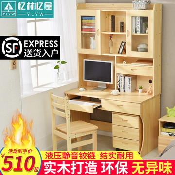 天猫 实木书桌书架组合家用儿童书柜一体台式电脑桌学生简约写字学习桌_海淘网