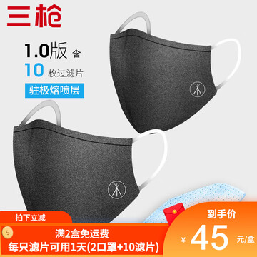 京东商城 三枪口罩驻极熔喷无纺布过滤层过滤插片可拆卸男女通用 【2口罩 10滤片】 【1.0基础版】91057k1组合2(深麻灰*2)【图片 价格 品牌 评论】-京东_海淘网