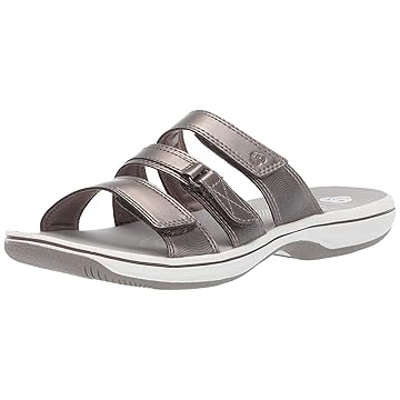 美国亚马逊 Amazon.com | Clarks Women's Brinkley Coast Slide Sandal, pewter synthetic, 5 M US | Slides_海淘网