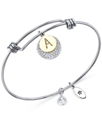 【Macy's】 Unwritten Pavé Initial Disc Bangle Bracelet in Stainless Steel Silver-Plate & Reviews - Bracelets - Jewelry & Watches - Macy's