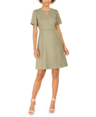 Macy's Elie Tahari Ariel Fringe-Trim Split-Neck Dress & Reviews - Dresses - Women - Macy's_海淘网