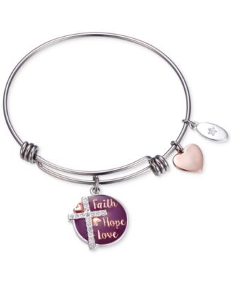 Macy's Unwritten Purple Enamel "Faith Hope Love" Crystal Cross Charm Adjustable Bangle Bracelet in Two-Tone Stainless Steel & Reviews - Bracelets - Jewelry & Watches - Macy's_海淘网