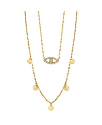 【Macy's】 Unwritten Gold Flash Plated Cubic Zirconia Evil Eye Layered Pendant Necklace with Beaded Second Chain