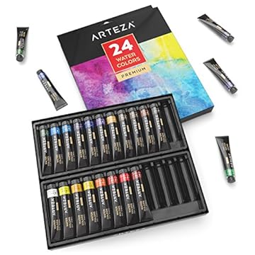 美国亚马逊 Amazon.com : ARTEZA Watercolor Paint, Set of 24 Colors/Tubes, 24x12ml/0.4 oz with Storage Box, Non Toxic Paints for The Professional Artist Hobby Painters : Office Products_海淘网