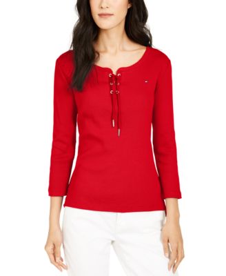 Macy's Tommy Hilfiger Cotton Ribbed Lace-Up Top_海淘网