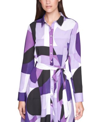 【Macy's】 Calvin Klein Abstract Print Belted Shirt Dress & Reviews - Dresses - Women - Macy's