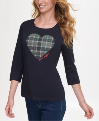 【Macy's】 Tommy Hilfiger Cotton Appliqué Heart T-Shirt, Created for Macy's & Reviews - Tops - Women - Macy's