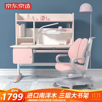 京东商城 京东京造 儿童学习桌椅套装 实木学习桌 学习椅 小学生书桌 可升降带书架大容量 粉色 京东秒杀C2M定制【图片 价格 品牌 评论】-京东_海淘网