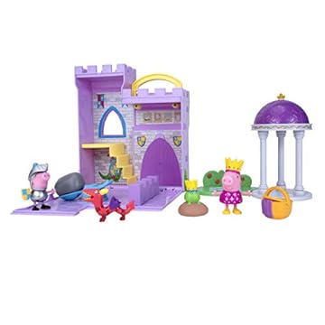 美国亚马逊 Amazon.com: Peppa Princess 堡垒冒险玩具套装 - 8 英寸(约 20.3 厘米)可扩展玩具,带提手,包括角色玩具公主和青蛙、野餐篮、乔治爵士(骑士)、龙和弹射器配件: Toys & Games_海淘网
