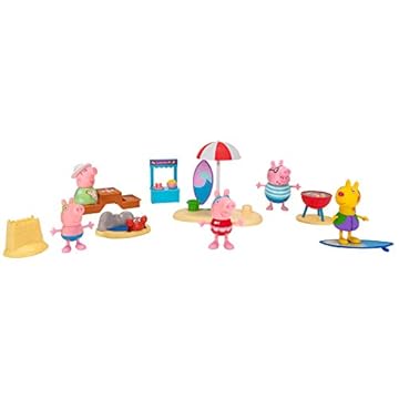 美国亚马逊 Amazon.com: Peppa Pig Beach Time Deluxe Playtime Set, 13 Piece Set, Feat. Character Toy Figures Including Daddy Pig, Mummy Pig, George Pig, Plus Surfboards, Umbrella Stand, Sandcastle & Other Beach Accessories: Toys & Games_海淘网