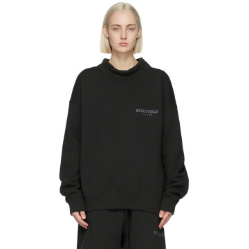 【SSENSE】 Essentials: Black Mock Neck Pullover Sweatshirt | SSENSE