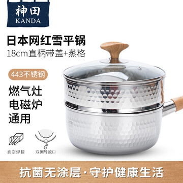【京东商城】 神田KANDA 雪平锅不锈钢锅汤锅煮面热奶泡面锅 电磁炉儿童辅食小奶锅日本原装进口 18cm雪平锅(含玻璃盖+蒸格)【图片 价格 品牌 评论】-京东