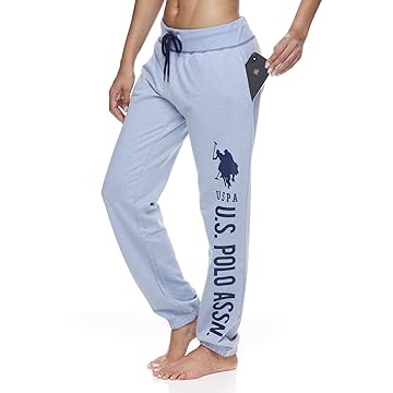 美国亚马逊 Amazon.com: U.S. Polo Assn. Essentials Womens Sweatpants Joggers French Terry Sleep Lounge Pajama Pants with Pockets Blue Yonder Heather with Navy Blue Print 2 Large: Clothing_海淘网