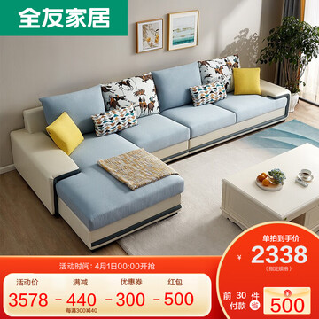 【京东商城】 全友家居沙发 布艺沙发 现代简约沙发北欧客厅整装皮布艺沙发组合可拆洗布沙发套装家具102085 C款正向布皮沙发(1+3+转)【图片 价格 品牌 评论】-京东