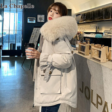 【京东商城】 拉夏贝尔棉服女21年冬季女装时尚百搭冬装派克服女气质时尚工装宽松棉衣外套女 米白色 M【图片 价格 品牌 评论】-京东