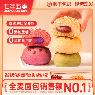 【天猫】 七年五季欧包全麦面包休闲零食品低脂无蔗糖粗粮0饱腹小吃早代餐