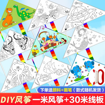 【京东商城】 手绘diy风筝空白涂鸦儿童绘画教学自制材料包画材线批发 1米填色图案随机+30米线+六色颜料+笔【图片 价格 品牌 评论】-京东