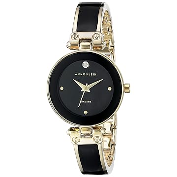 【美国亚马逊】 Anne Klein Womens AK/1980BKGB Diamond-Accented Dial Black Gold-Tone Bangle Watch: Clothing
